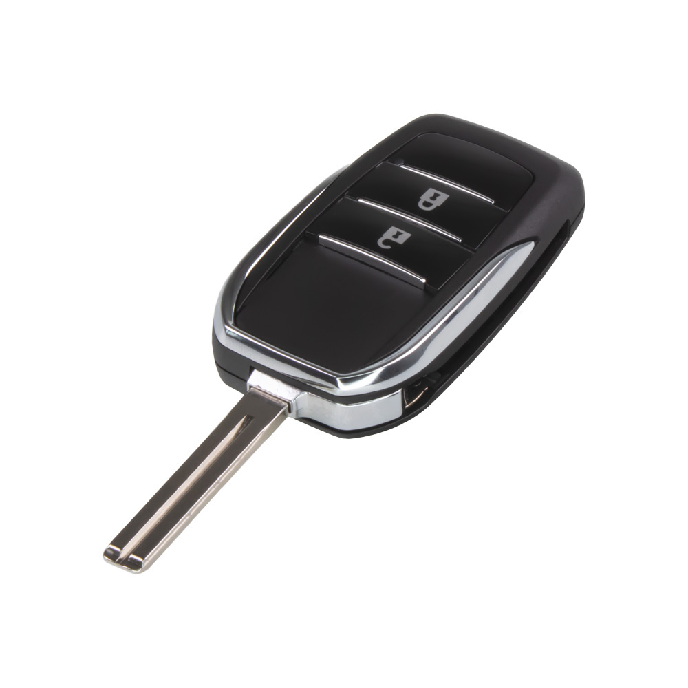 Náhradný obal vystreľovacieho kľúča pre vozidlá Toyota s 2-tlačítkovým nevystreľovacím kľúčom (bez elektroniky a čipu imobilizéra). Slúži na zmenu zo staršieho nevystreľovacieho kľúča na novšiu verziu s vystreľovacím kľúčom.