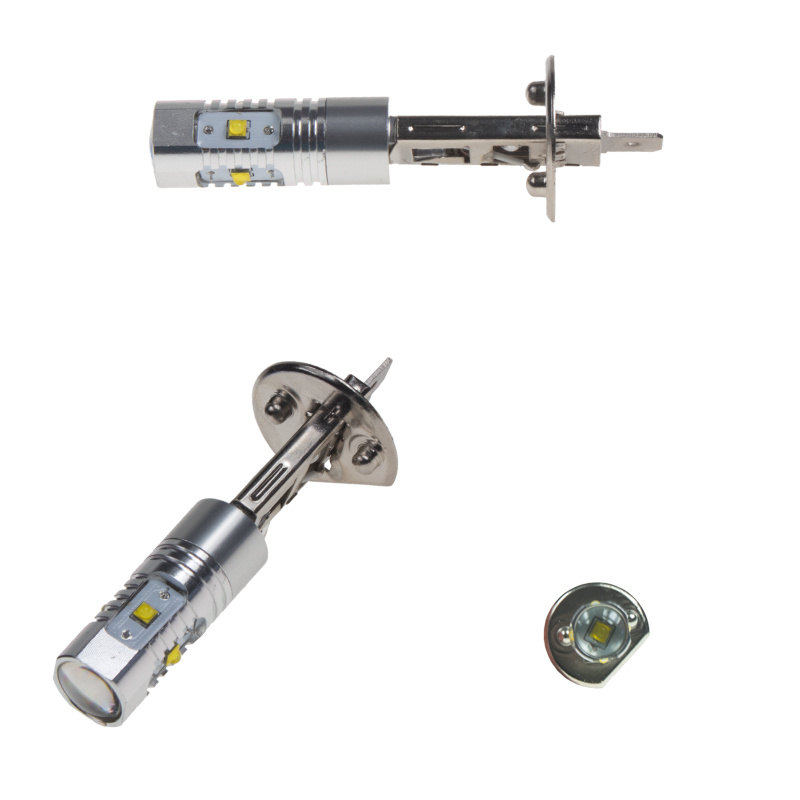 Nová generace LED autožárovek s paticí H1, bílá, 5x super svítivý LED čip CREE XBD 5 W + rozptylová krycí čočka.