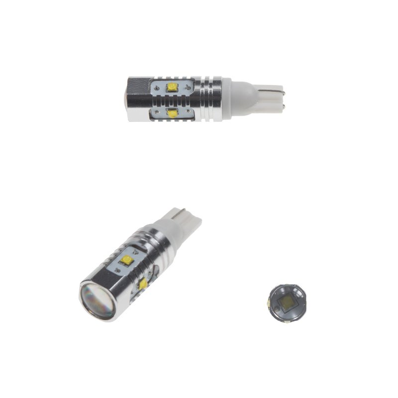 Nová generace LED autožárovek s paticí T10, bílá, 5x super svítivý LED čip CREE XBD 5 W + rozptylová krycí čočka.