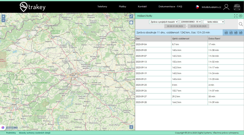DS612, okrem poplachových a oznamovacích funkcií, ponúka aj množstvo logistiky. Prístup z úrovne webového prehliadača, náhľad trás na mape, prehľad zastávok, najazdených kilometrov, sú užitočné doplnky, ktoré vám umožnia udržať väčšiu kontrolu nad vašim vozovým parkom.