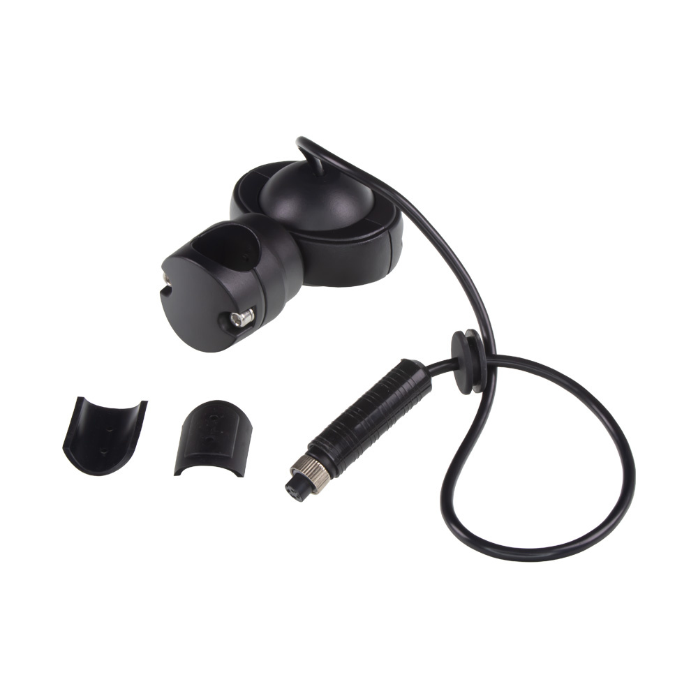 AHD kamera CCD s IR světlem a HD rozlišením (720P), vnější, určená pro montáž na trubku, především na konstrukci zrcátek s trubkovým rámem nákladních vozů, autobusů, karavanů či dodávek. Propojení 4-PINovým kabelem. Kameru lze připojit pouze k zařízením s technologií AHD (analog HD technology), nelze připojit k běžným monitorům, které nemají AHD!